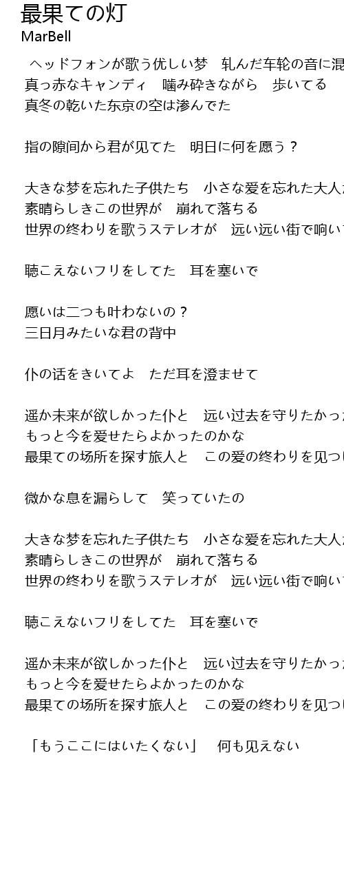 | 世界の终わりを歌うステレオが 远い远い街で响いていたの | |