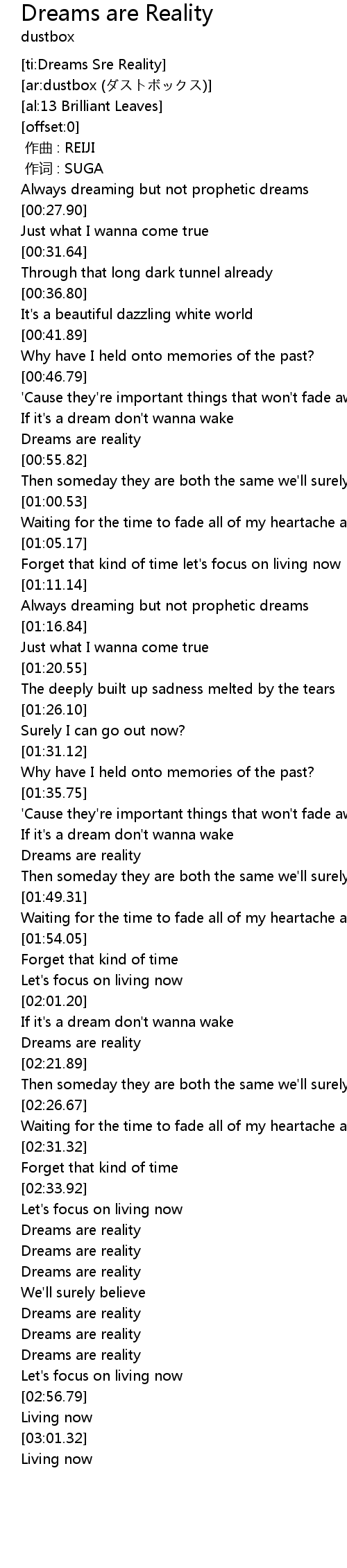 | [01:13.17] | Always dreaming but not prophetic dreams |