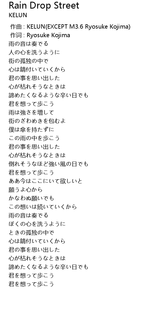 | [00:00.00] | zuò qǔ : KELUN EXCEPT M3. 6 Ryosuke Kojima |