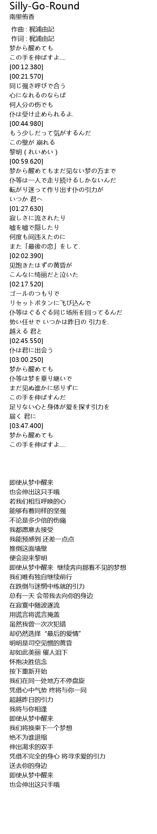 | [03:47.650] | 梦から醒めても |