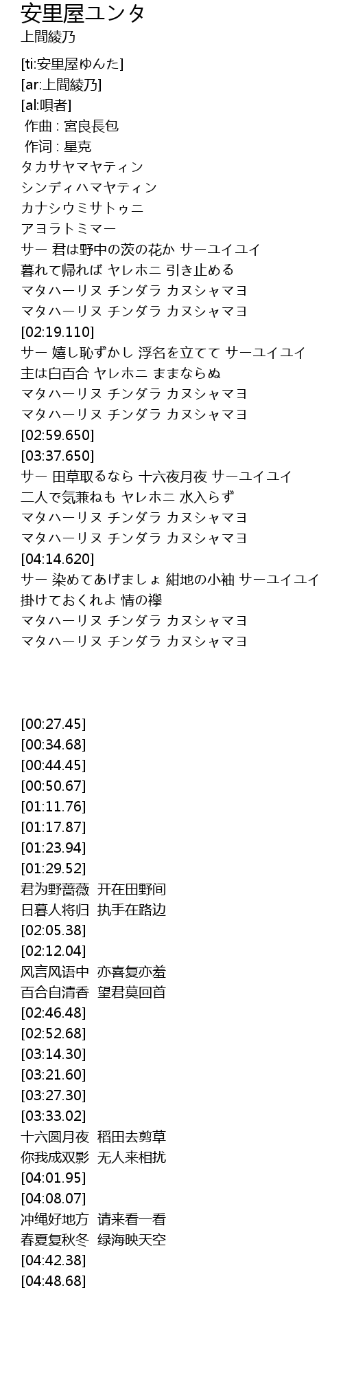 | [04:01.950] | マタハーリヌ チンダラ カヌシャマヨ |