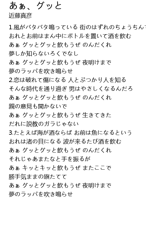 | あぁ グッとグッと飲もうぜ のんだくれ | |