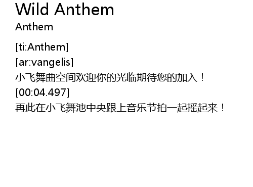 | [00:03.380] | xiǎo fēi wǔ qǔ kōng jiān huān yíng nǐ de guāng lín qī dài nín de jiā rù! |