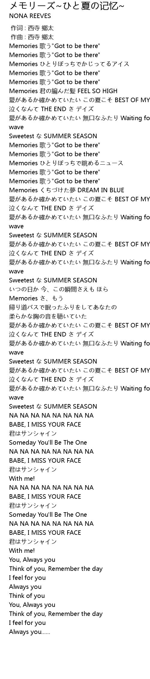 | [01:08.134] | Memories 歌う"Got to be there" |