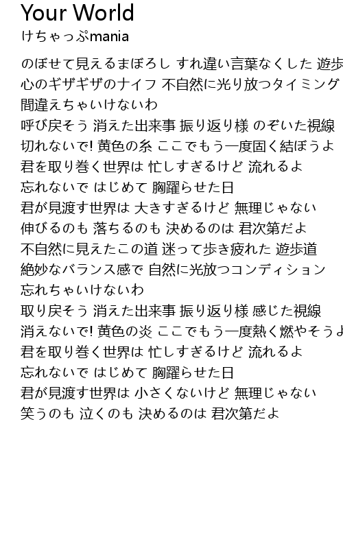 | 君を取り巻く世界は 忙しすぎるけど 流れるよ | |