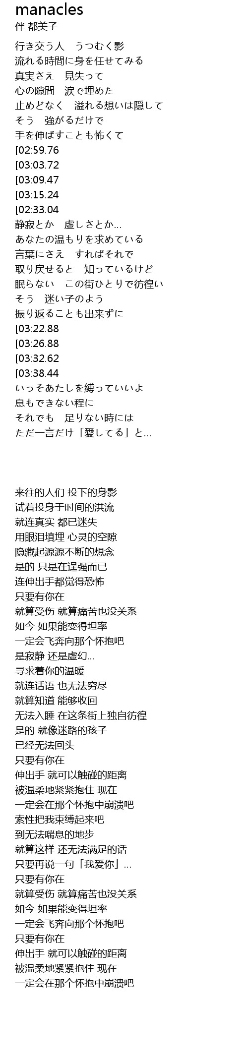 | [02:26.11][03:38.44] | 崩れ落ちてくよ その胸で |