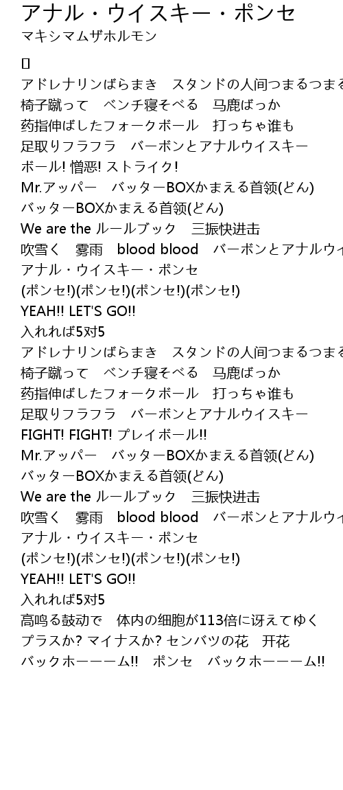 | アナル・ウイスキー・ポンセ (ポンセ!)(ポンセ!)(ポンセ!)(ポンセ!) | |