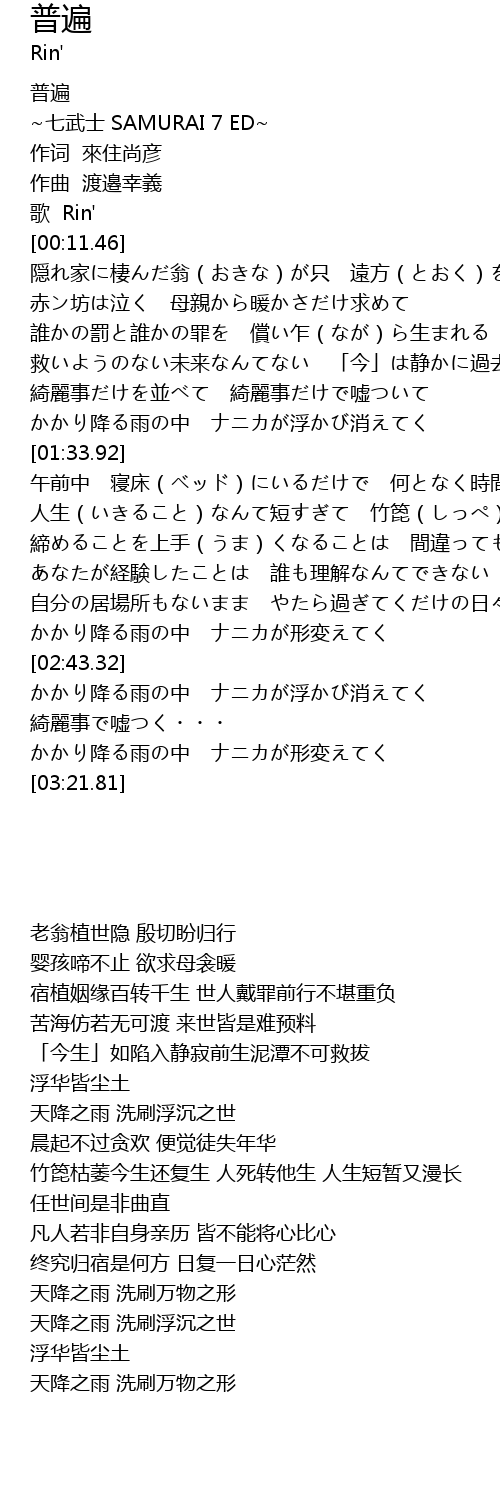 | [00:53.25] | 誰かの罰と誰かの罪を 償い乍(なが)ら生まれる |