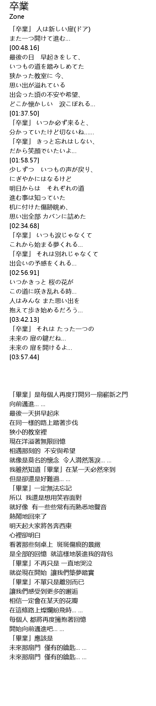 | [03:42.69] | 「卒業」 それは たった一つの |