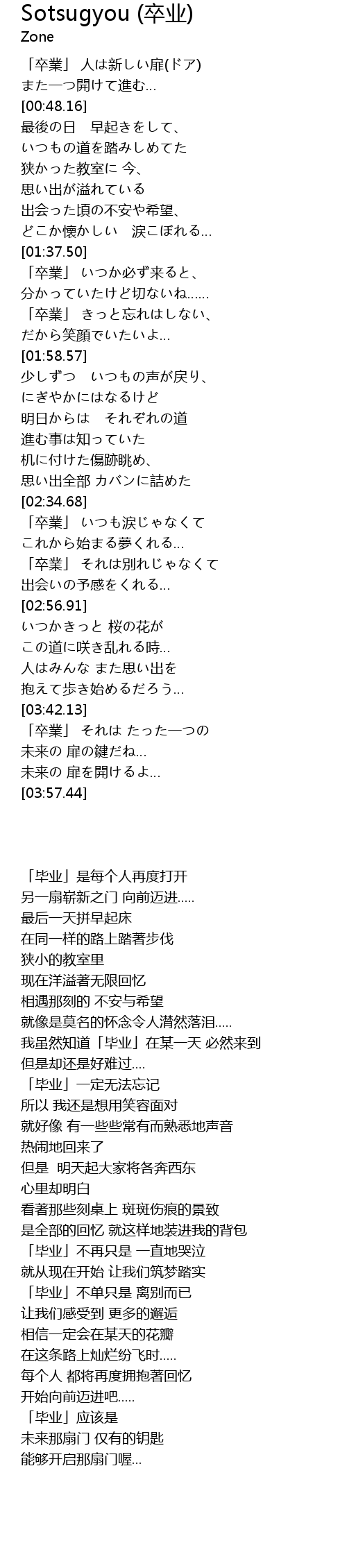 | [03:42.69] | 「卒業」 それは たった一つの |