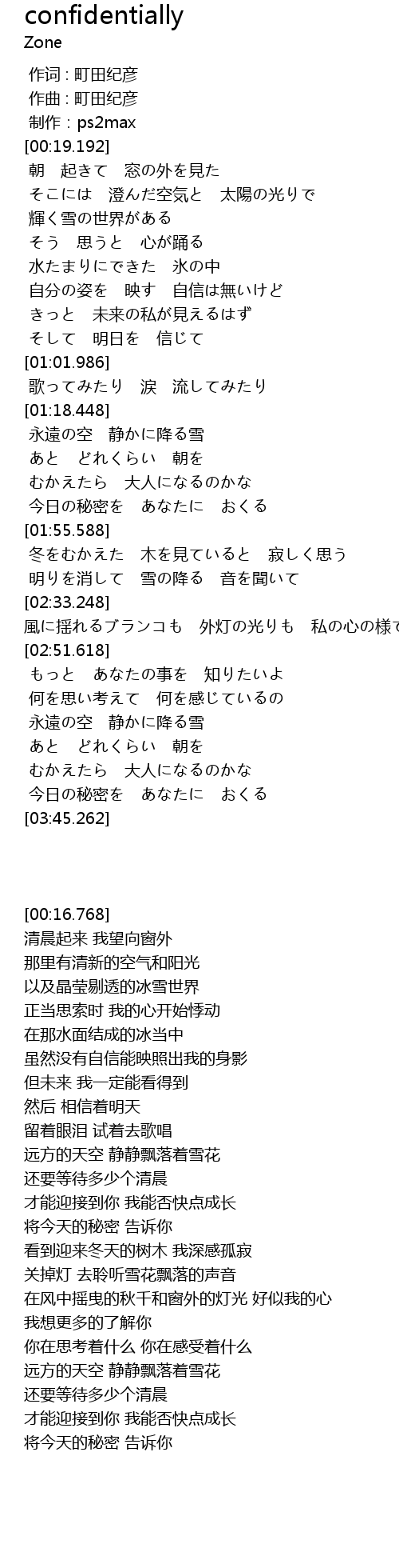 | [01:19.391] | 永遠の空 静かに降る雪 |