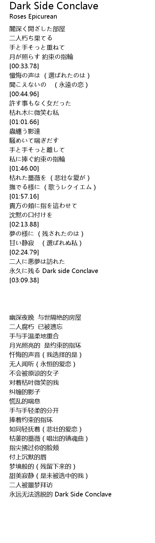 | [02:31.13] | 永久に残る Dark side Conclave |