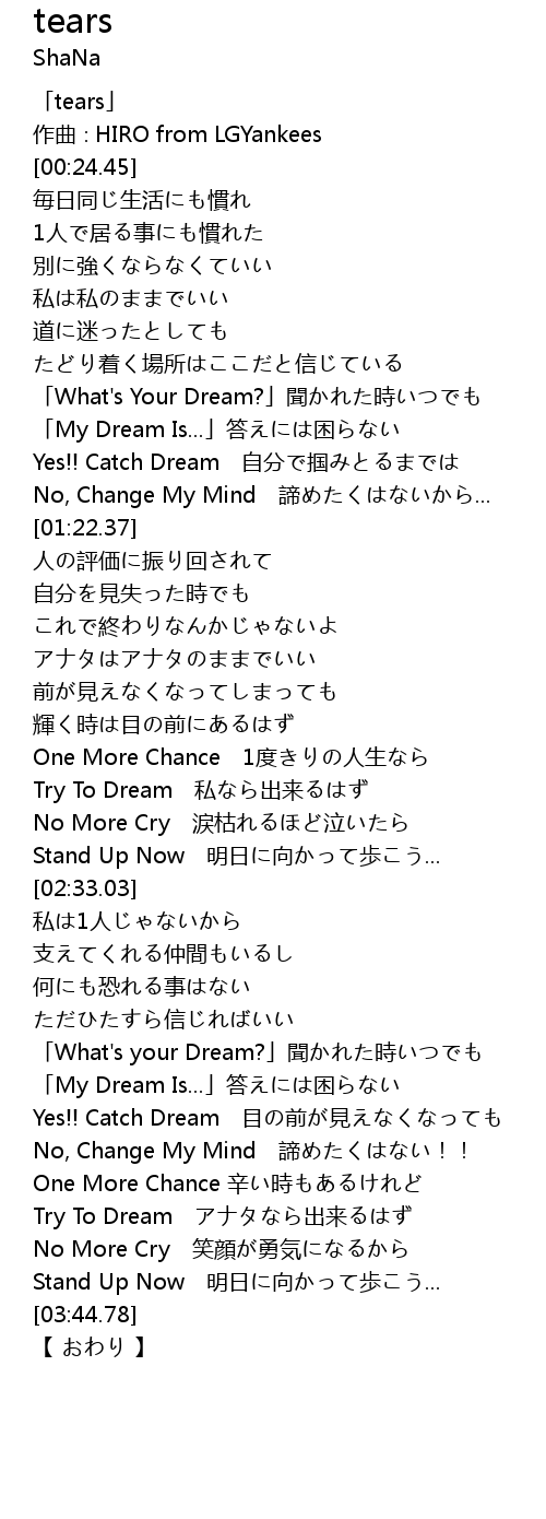 | [00:01.45] | 「tears」 |