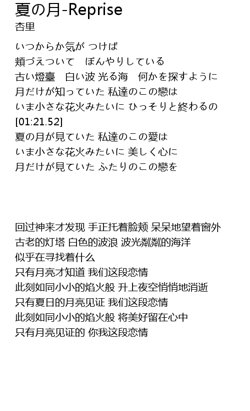 | [02:03.67] | 夏の月が見ていた 私達のこの愛は |