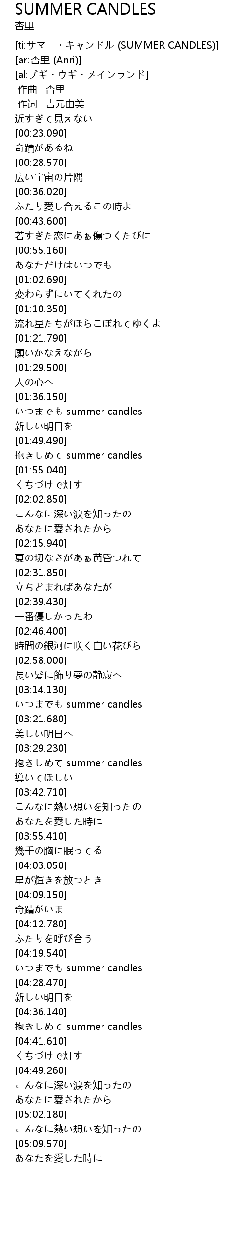 | [04:23.620] | いつまでも summer candles |