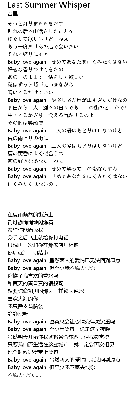 | [03:49.68] | Baby love again せめてあなたをにくみたくはないの |