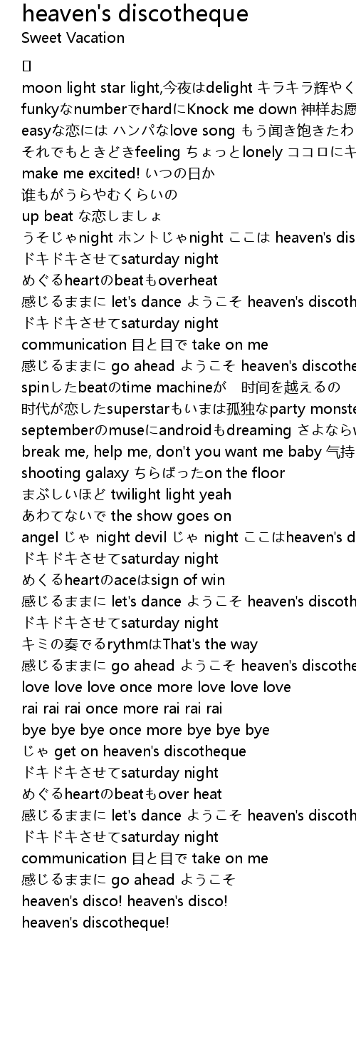 | Song | heaven's discotheque |