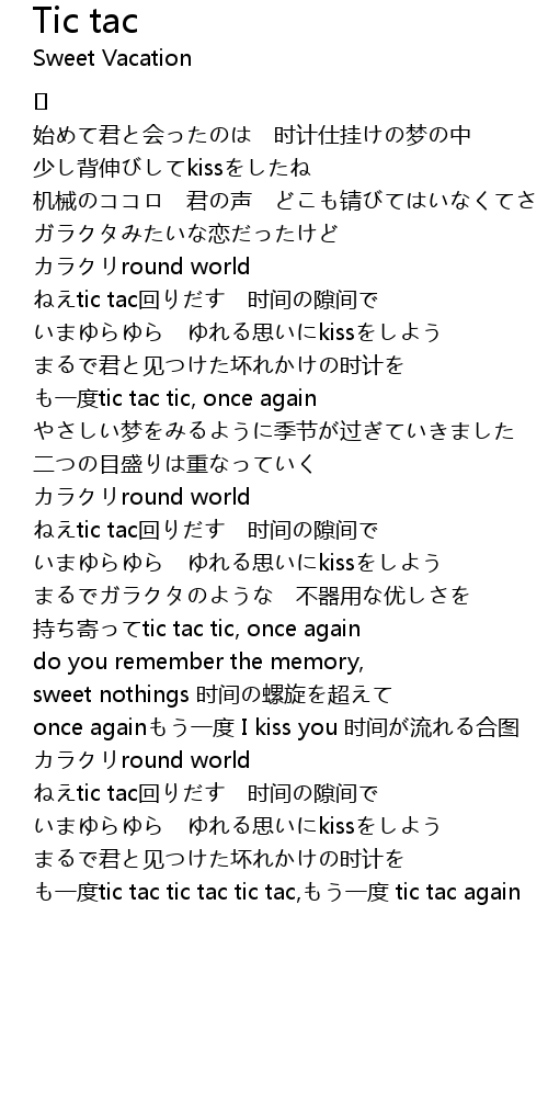 | も一度tic tac tic tac tic tac,もう一度 tic tac again |