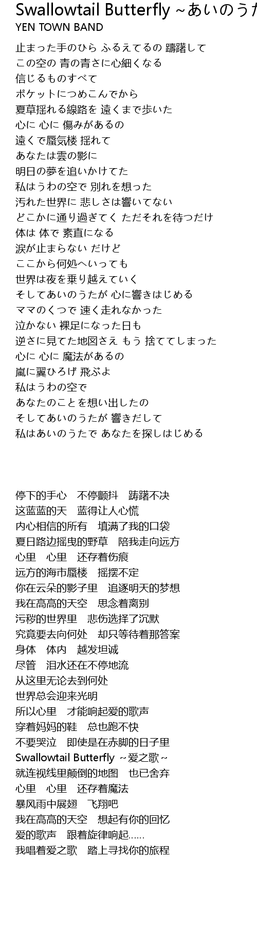 | Song | Swallowtail Butterfly ~あいのうた~ |