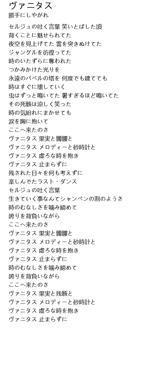 | Song | ヴァニタス |