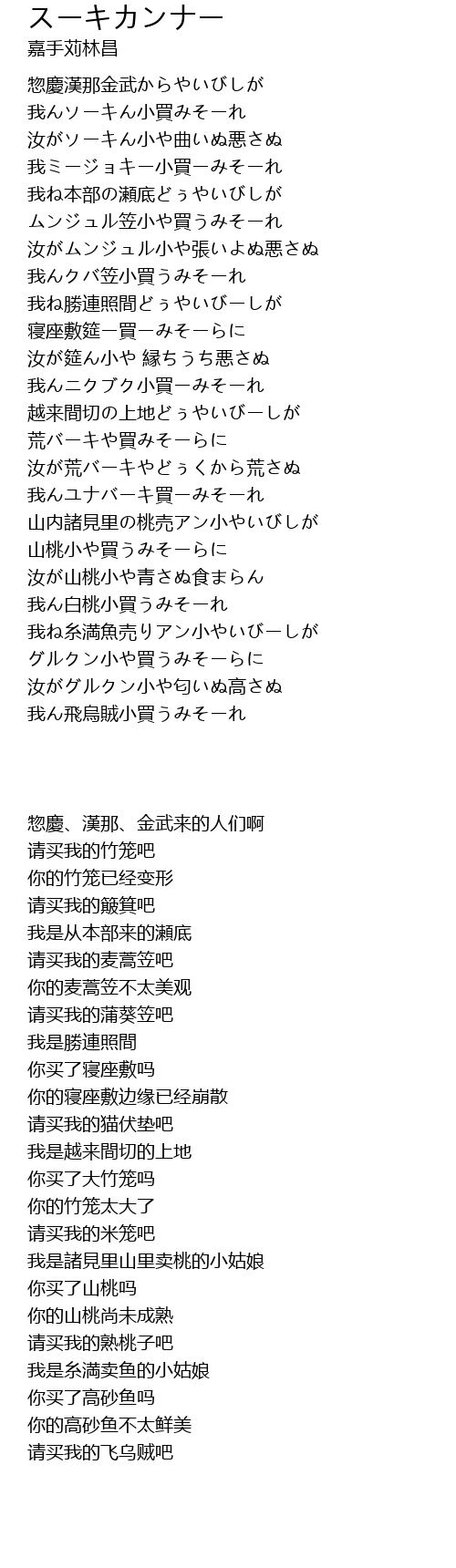 | [02:40.120] | 我ね糸満魚売りアン小やいびーしが |
