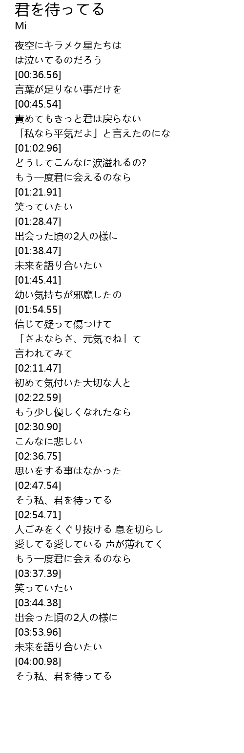 | [02:03.76] | 「さよならさ、元気でね」て |