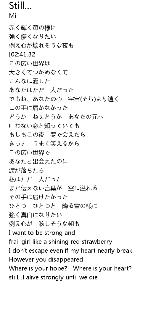 | [00:23.67][02:41.32] | Still... I love you until we die |