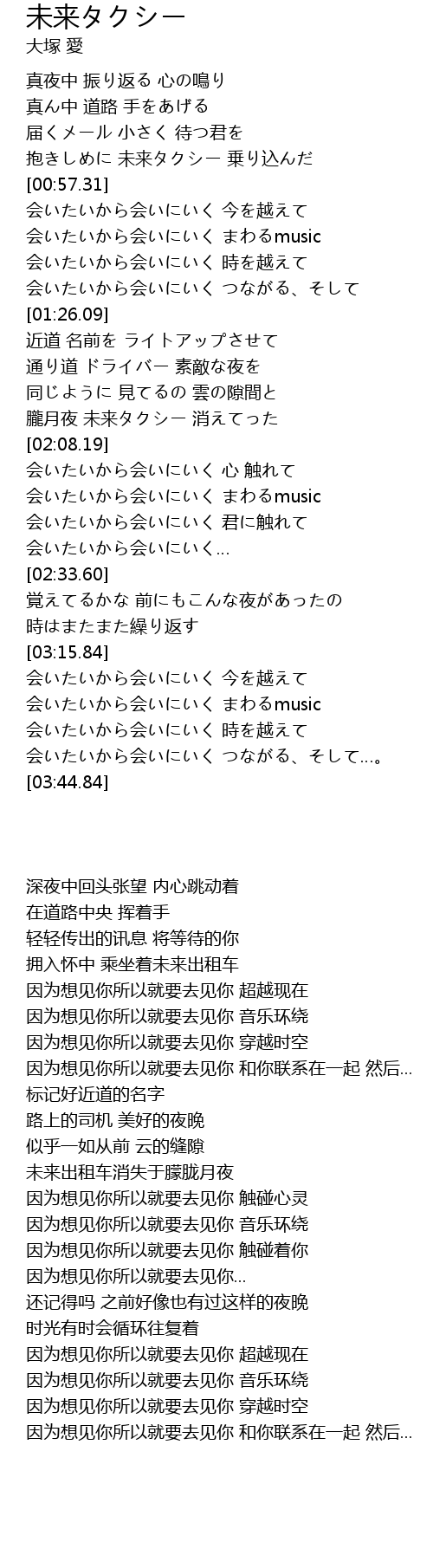 | [00:48.59] | 抱きしめに 未来タクシー 乗り込んだ |