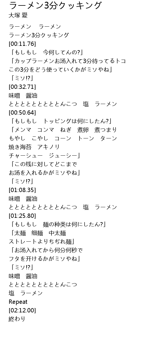 | [00:06.03] | ラーメン3分クッキング |