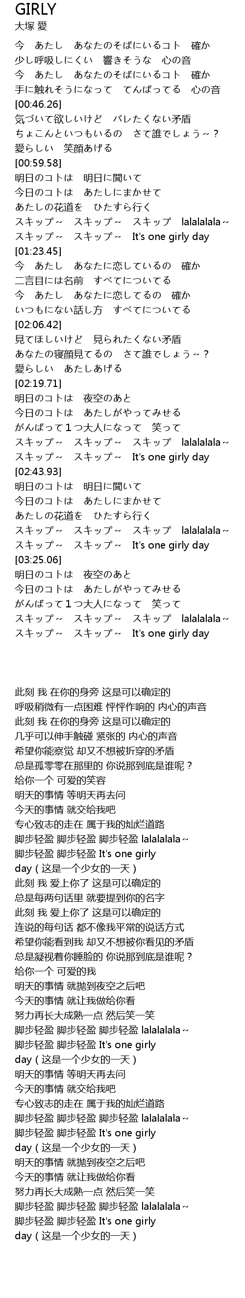 | [03:43.91] | スキップ~ スキップ~ It's one girly day |