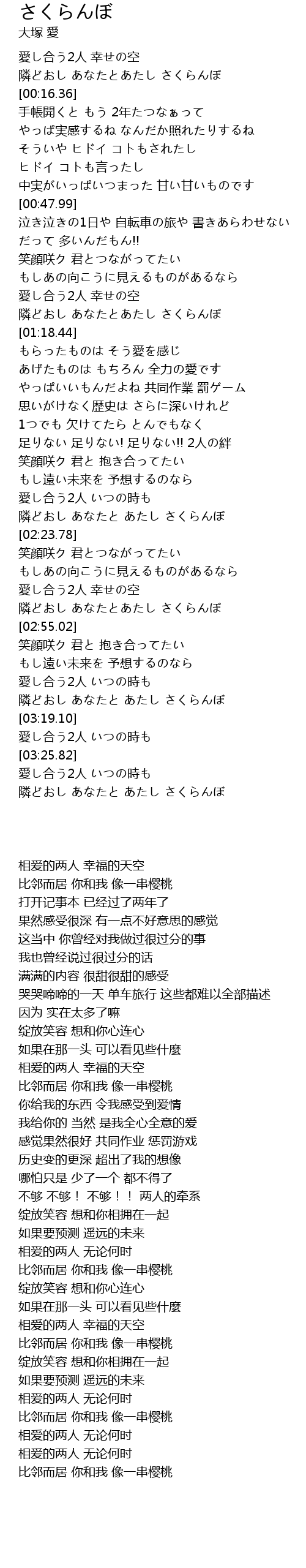 | [02:16.76] | 隣どおし あなたと あたし さくらんぼ |