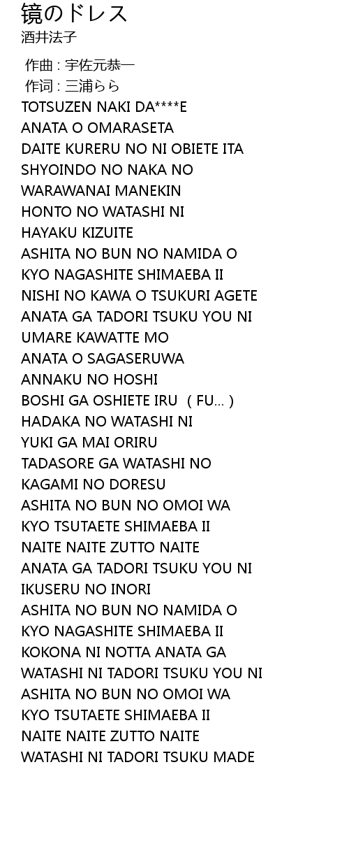 | [02:07.38] | KAGAMI NO DORESU |