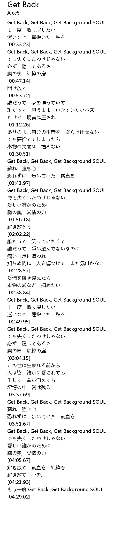 | [03:40.99] | Get Back, Get Back, Get Background SOUL |