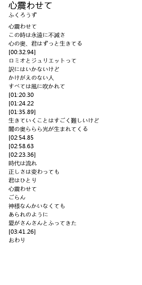 | [03:02.59][02:54.85][02:15.23][02:07.50] | 君はひとり |