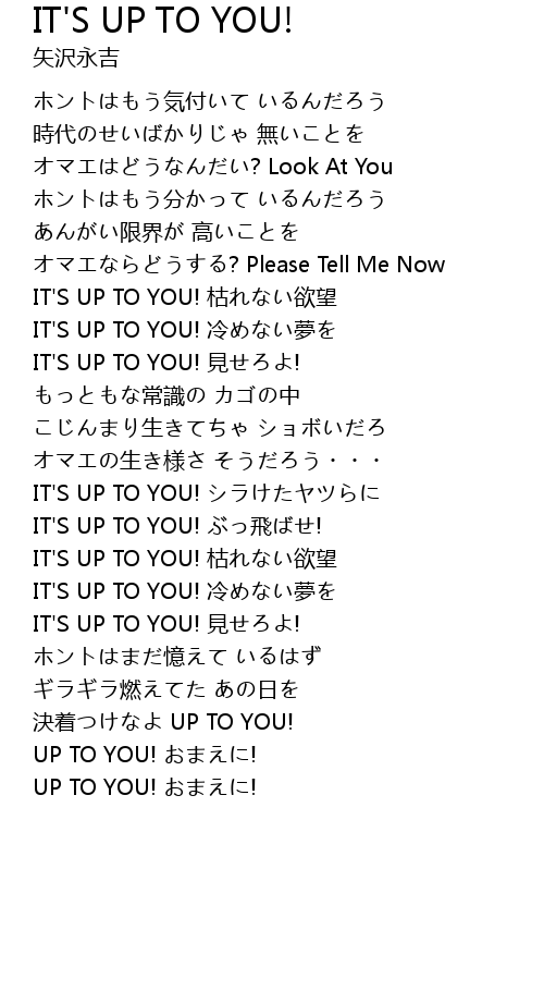 | IT'S UP TO YOU! シラけたヤツらに | |