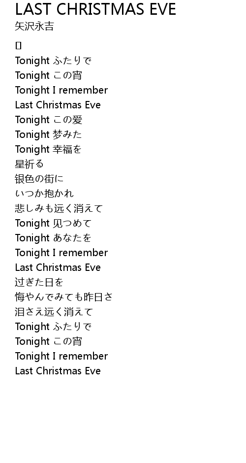 | Song | LAST CHRISTMAS EVE |