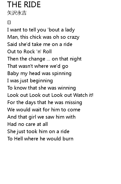 | Said she'd take me on a ride | |