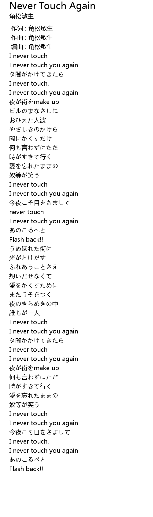 | Song | Never Touch Again |