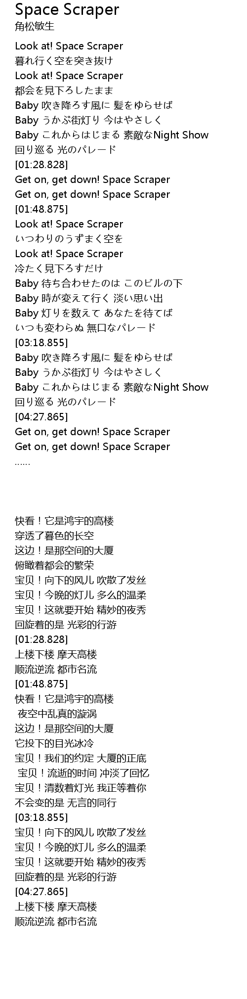 | [00:53.406] | 都会を見下ろしたまま |
