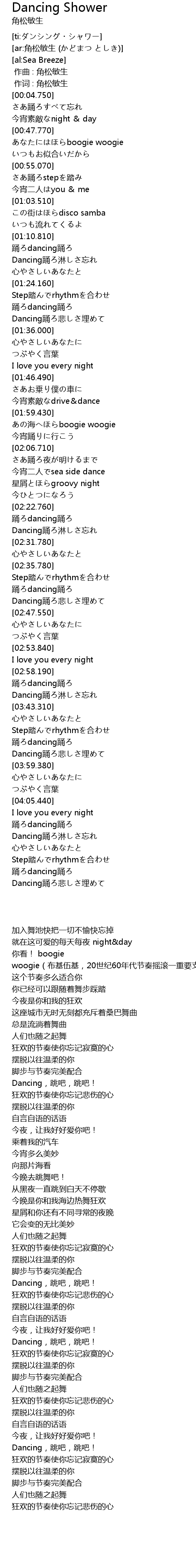 | [03:38.810] | Dancing踊ろ淋しさ忘れ |