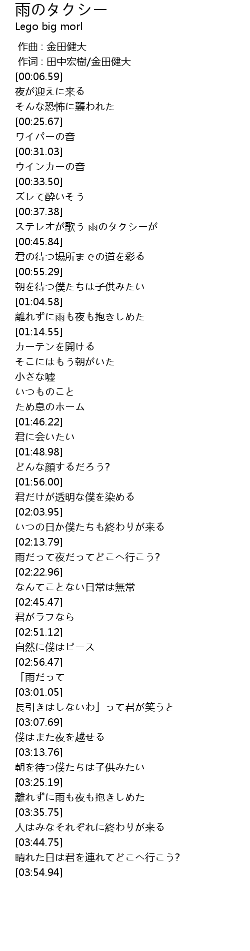 | [00:39.27] | ステレオが歌う 雨のタクシーが |