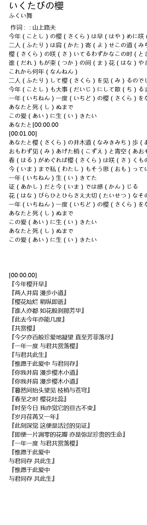 | [02:55.907] | 春(はる)がめぐれば樱(さくら)は咲(さ)くもの |