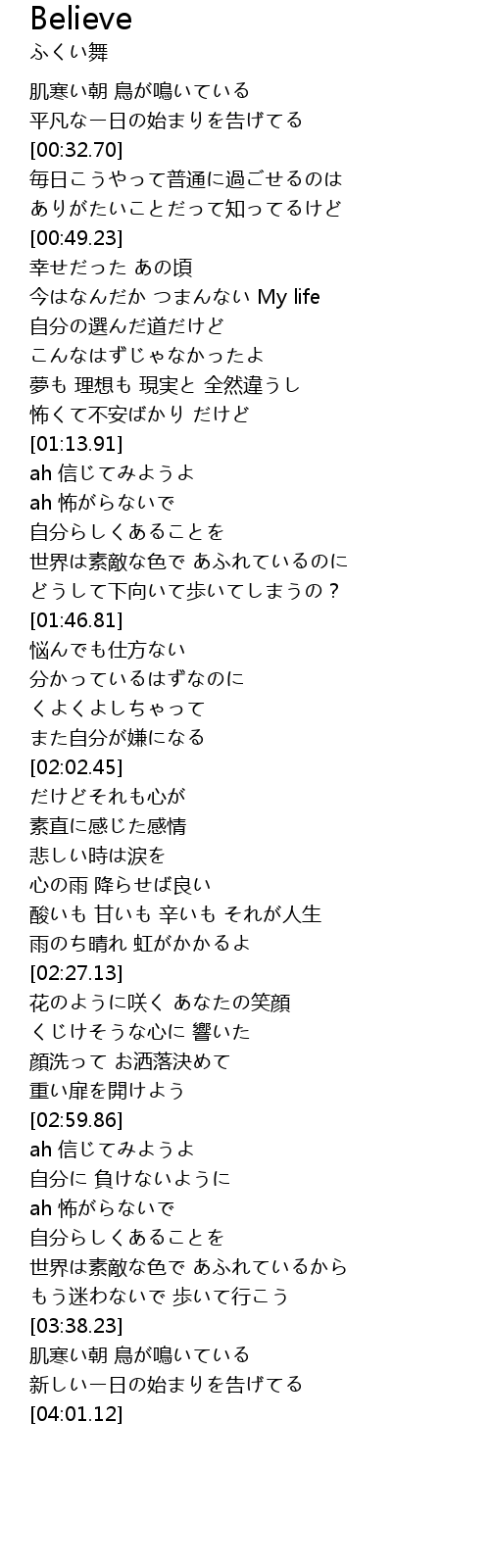| [03:02.89] | ah 信じてみようよ |