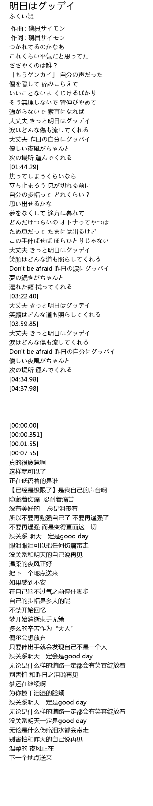 | [04:03.17] | 大丈夫 きっと明日はグッデイ |