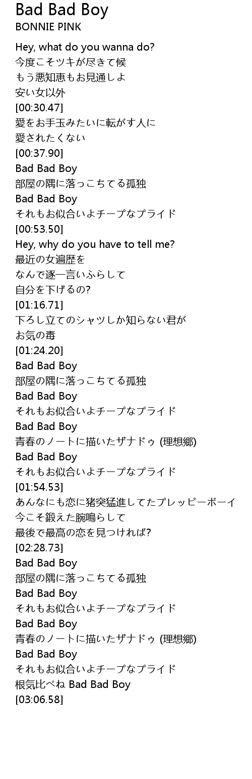 | [02:36.17] | Bad Bad Boy |