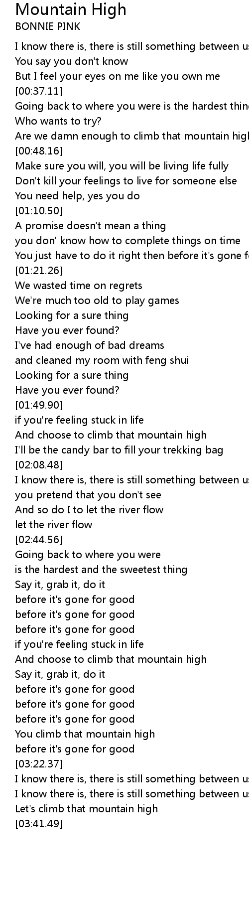 You climb that mountain high |