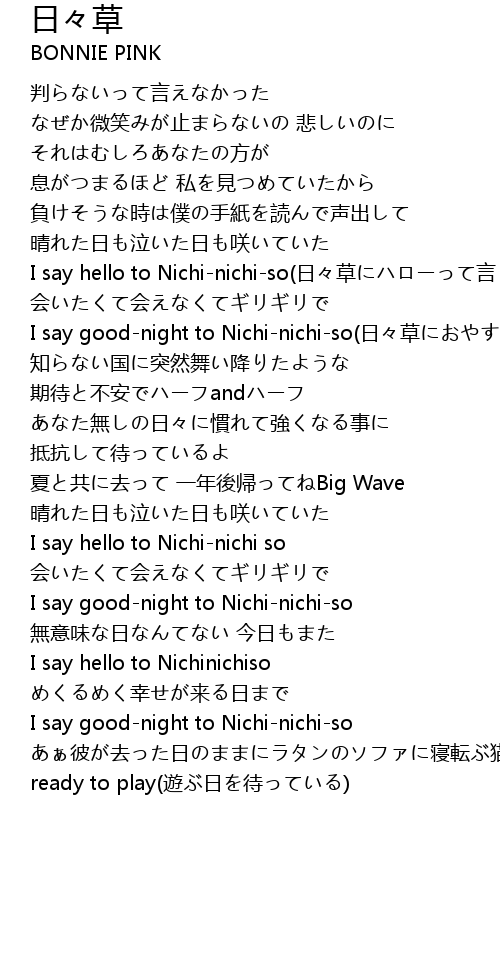 | I say hello to Nichinichiso rì cǎo yán | |