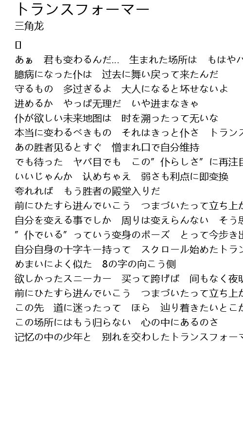 | Song | トランスフォーマー |