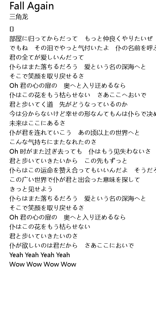 | Oh 君の心の扉の 奥へと入り迂めるなら | |