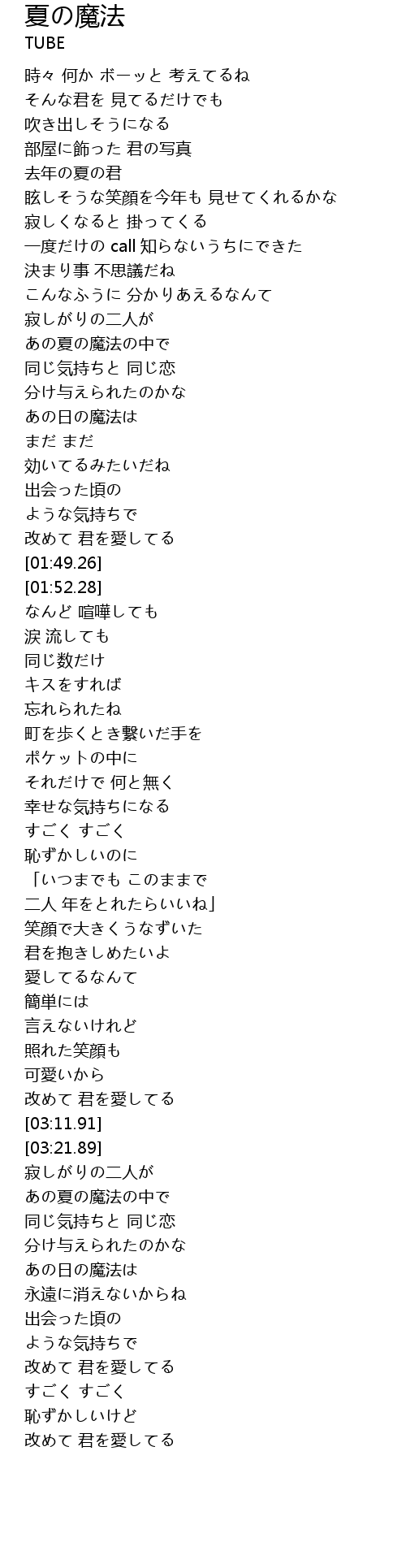 | [03:32.62] | あの夏の魔法の中で |